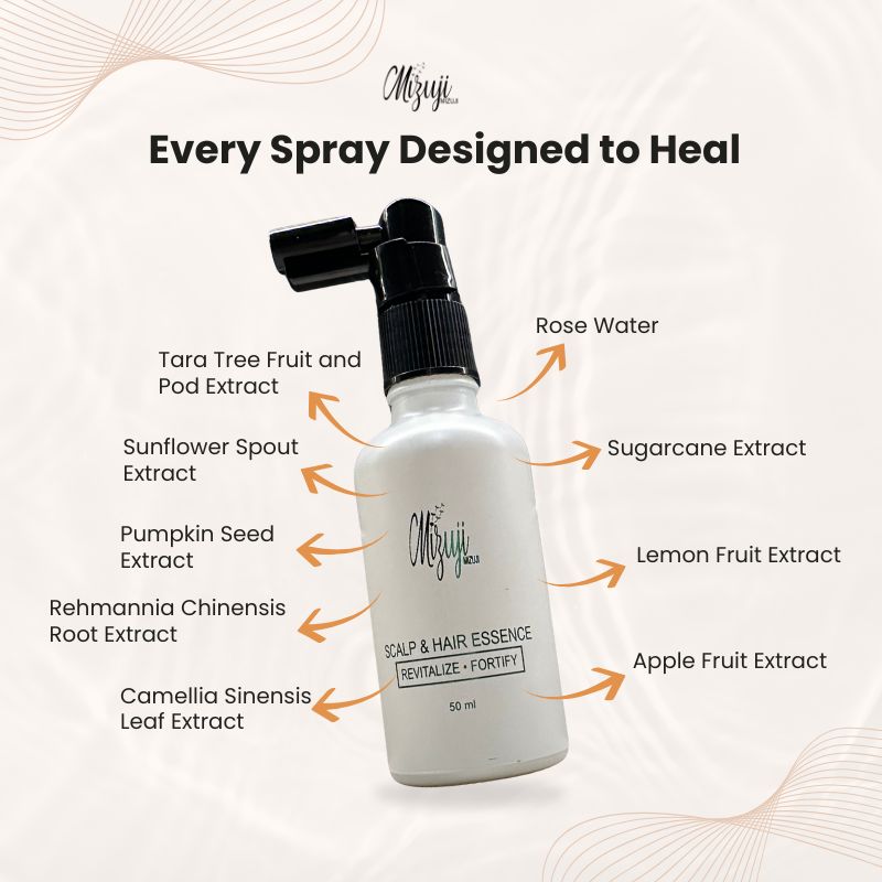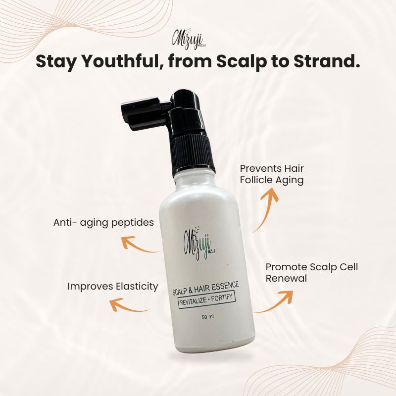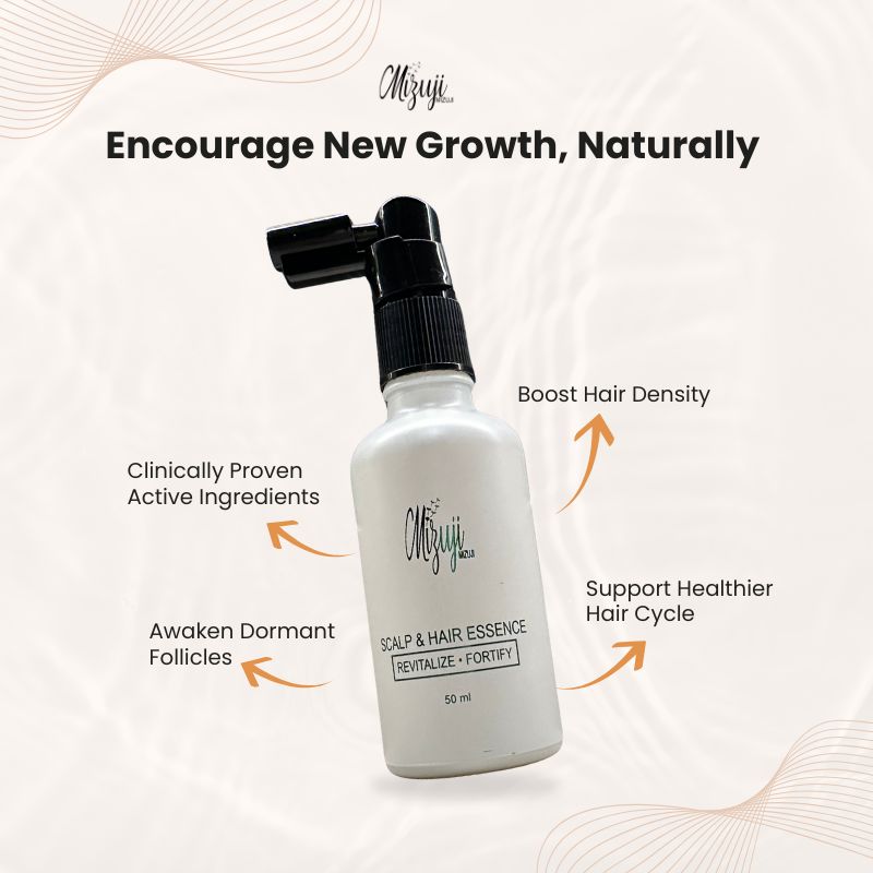 Mizuji’s Scalp & Hair Essence is your root-level rescue — lightweight, fast-absorbing, and formulated to rebalance your scalp and reactivate hair growth naturally.